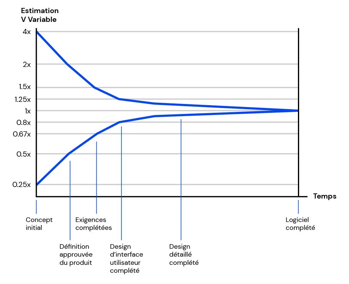 Selon une étude menée par Steve McConnell, une sommité dans le domaine du développement de logiciels aux États-Unis, le coût réel d’un projet varie entre 25 % et 400 % par rapport à la première estimation.
