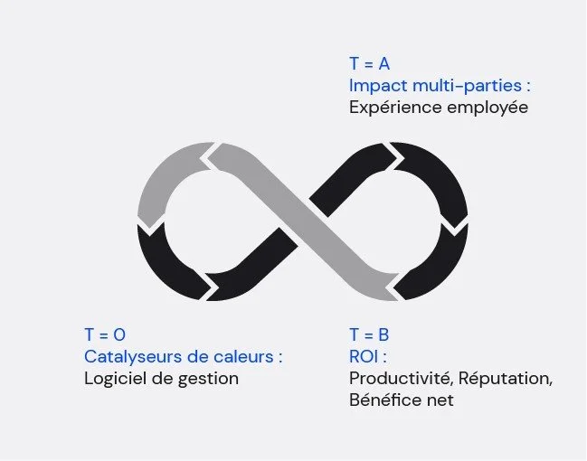 Dans un contexte de pénurie de main-d’œuvre, repousser des investissements en TI (un catalyseur de valeurs) peut mener à une diminution de la rétention des employés et à des enjeux d’embauche (impacts multi-parties). Cela ne se calcule pas immédiatement dans un ROI. En réalité, ne pas investir dans un projet TI dégage une marge d’exploitation plus élevée, augmentant directement les bénéfices nets de l’organisation et donc, de l’actionnaire. Cependant, l’impact se fait seulement sentir durant les années suivantes.